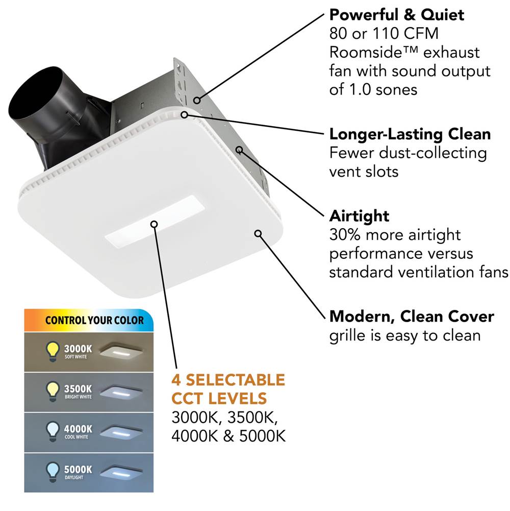 Broan Nutone 110 CFM, 1.0 SONES FAN W/ CLEANCOVER AND SELECTABLE CCT LED LIGHT