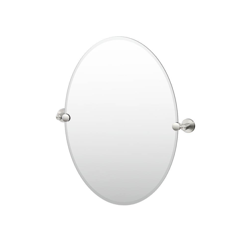 / Gatco Reveal 26.5”H Frameless Oval Mirror, Satin Nickel