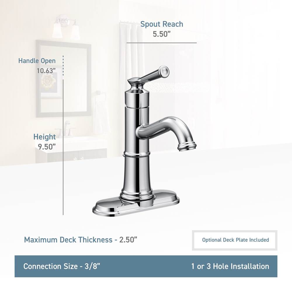 Moen Belfield One-Handle Bathroom Sink Faucet with Drain Assembly and Optional Deckplate, Brushed Nickel