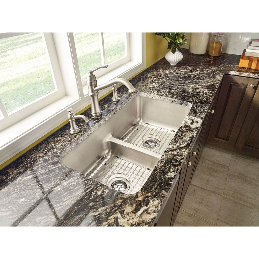 / Moen Traditional Deck Mounted Kitchen Soap Dispenser with Above the Sink Refillable Bottle, Chrome