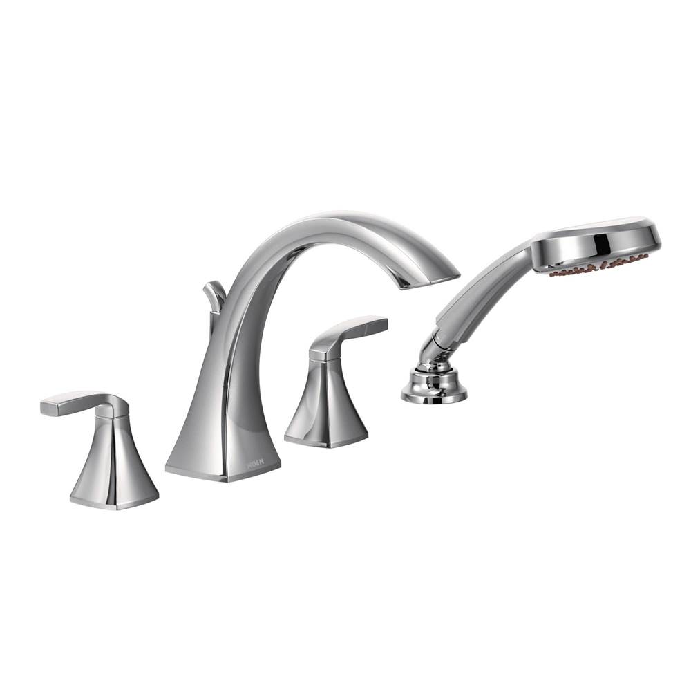 Moen Voss 2-Handle High-Arc Roman Tub Faucet Trim Kit with Hand Shower in Brushed Gold (Valve Sold Separately)