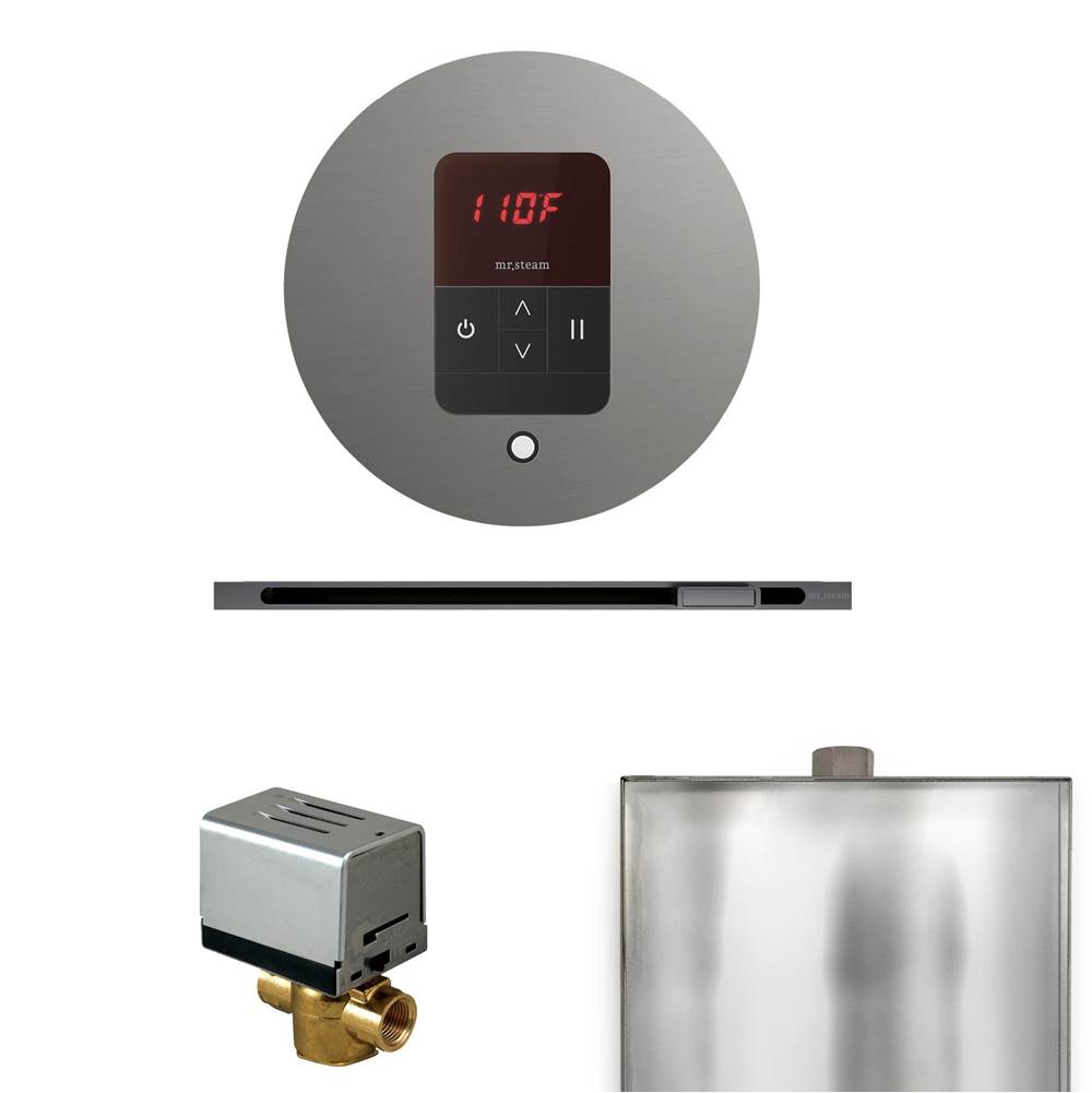 Mr. Steam Basic Butler Steam Shower Control Package with Round iTempo Control and Linear Steamhead in Brilliant Black