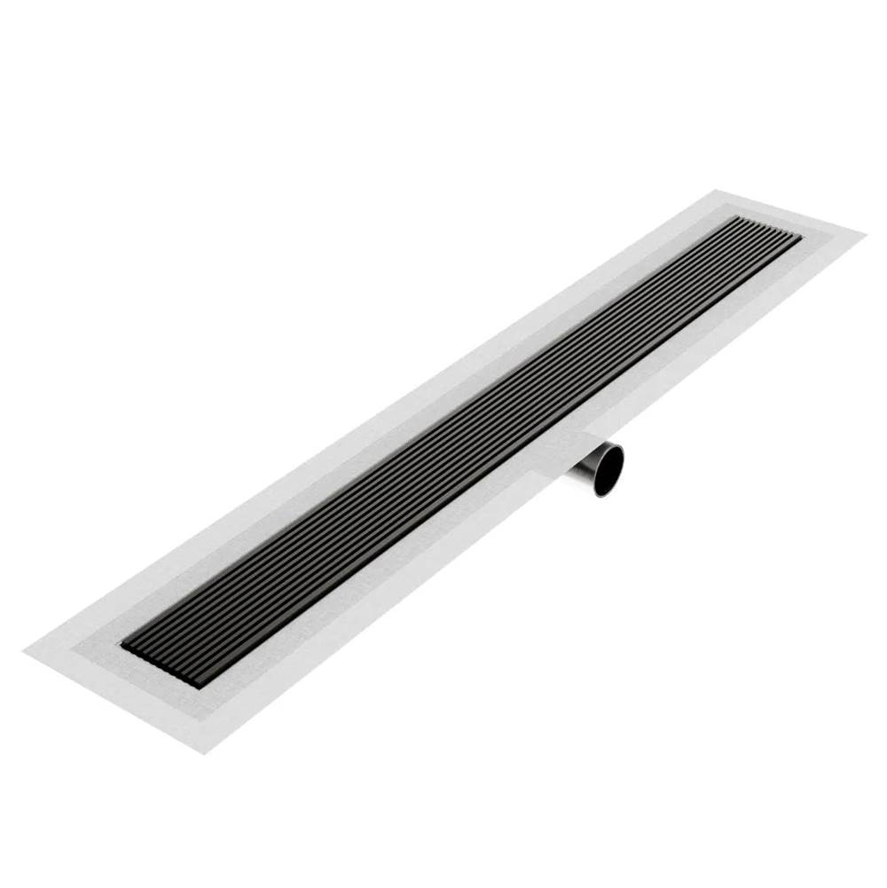 QM Drain Delmar Series. 28” Standard length Side Outlet linear drain. Wedgewire Line. Black