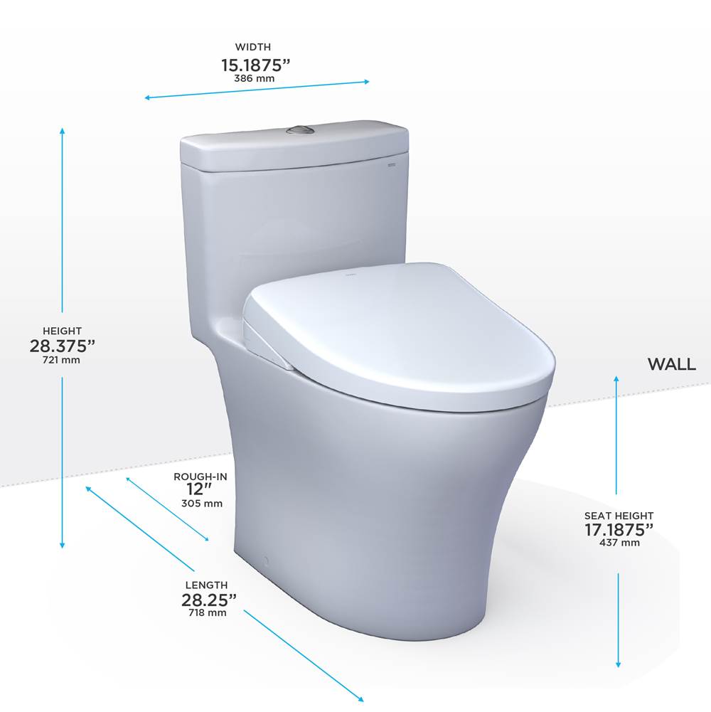TOTO WASHLET®+ Aquia® IV One-Piece Elongated Dual Flush 1.28 and 0.9 GPF Toilet and WASHLET S2 Bidet Seat, Cotton White