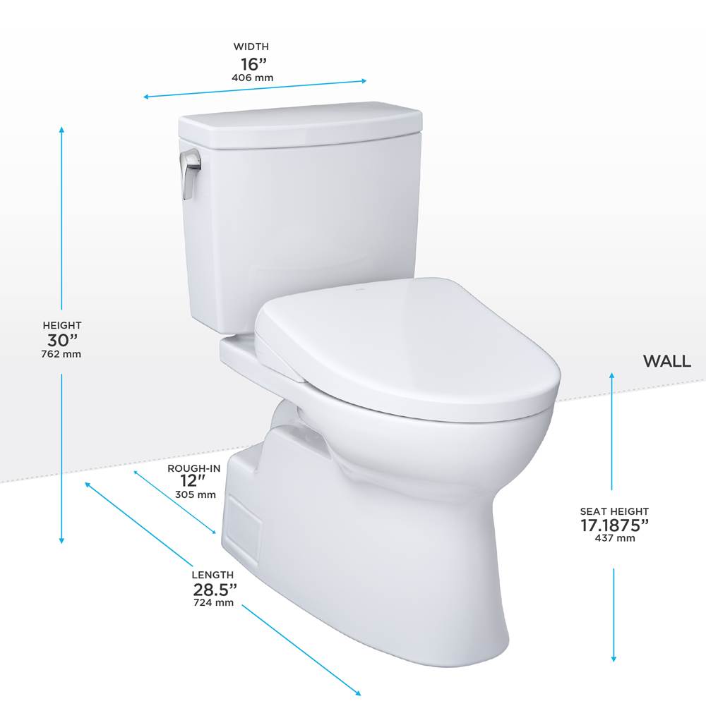 TOTO WASHLET®+ Vespin® II 1G® Two-Piece Elongated 1.0 GPF Toilet and WASHLET®+ S7 Contemporary Bidet Seat, Cotton White